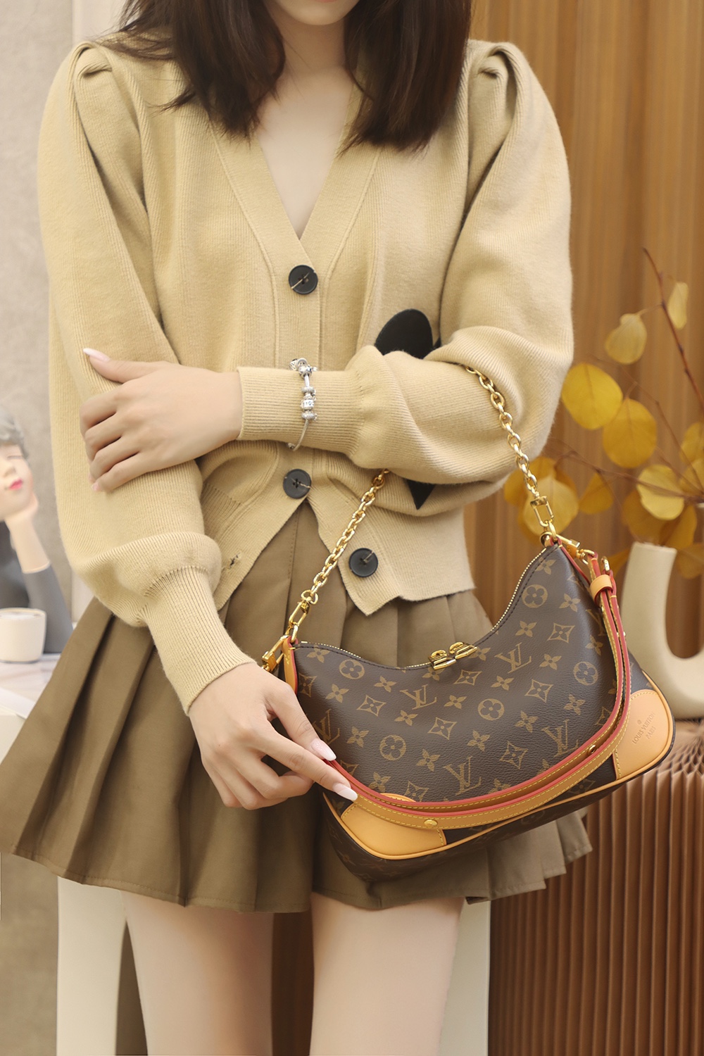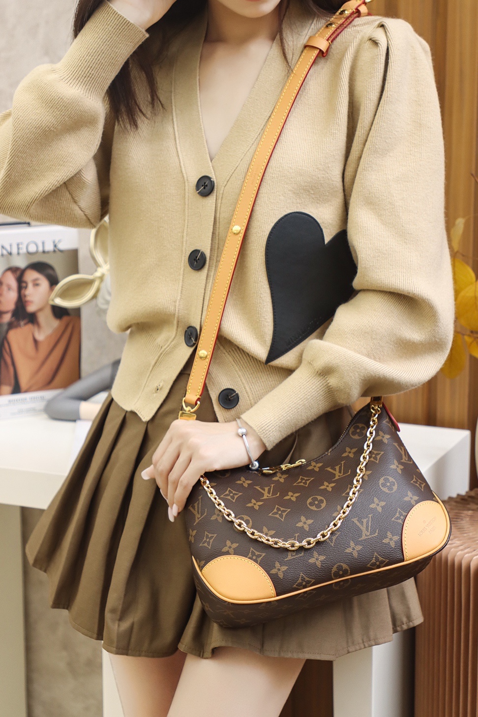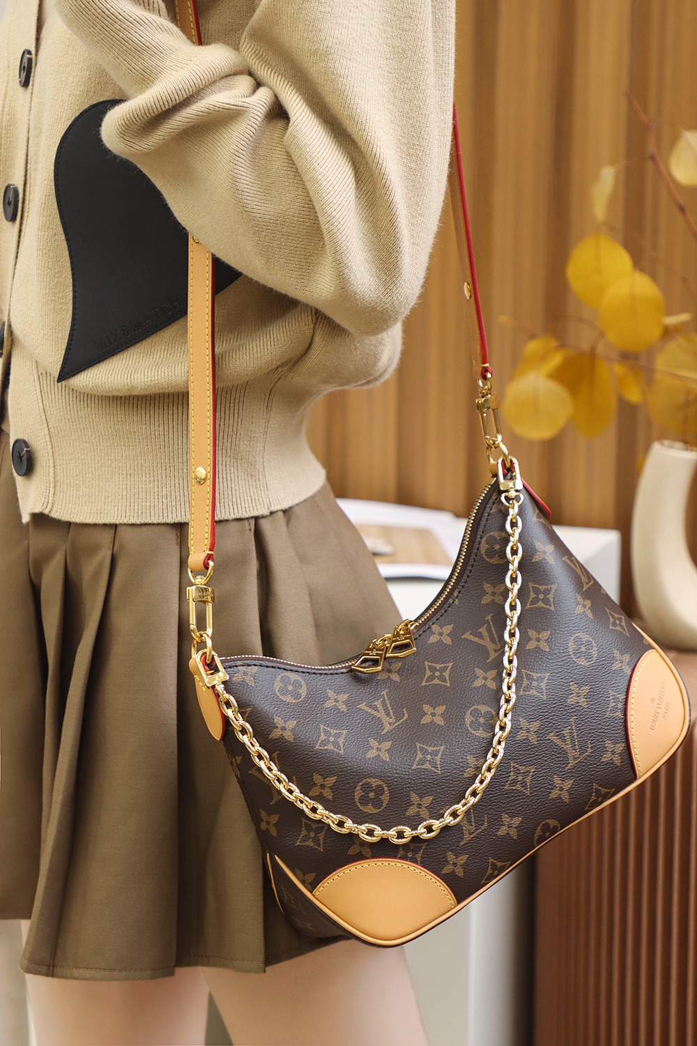 Louis Vuitton Boulogne Nm M45832 Rfid Tags Shoulder Bag Chain Monogram Brown Gol