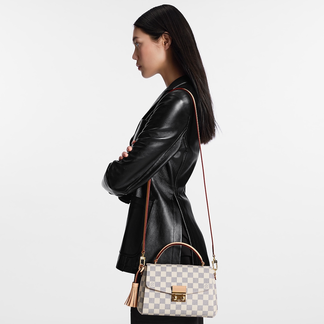 A compact bag with modern lines, the Croisette in summery Damier Azur canvas boasts sophisticated details (note the signature S-lock) and a casual-chic allure. The removable leather tassel adds a touch of fun. Sized to fit the essentials plus a long wallet, this versatile piece can be hand-carried, slung over the shoulder or worn cross-body.