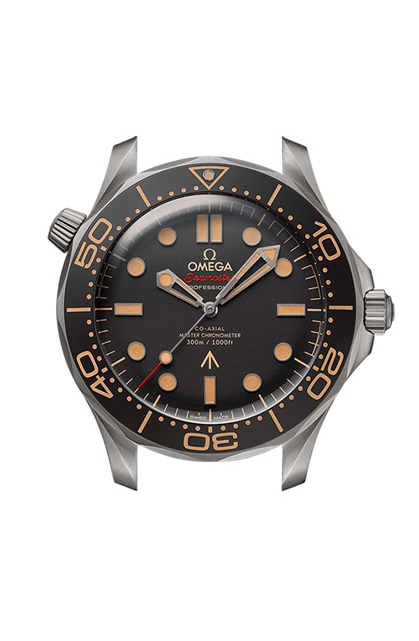 Identical to 007's watch in No Time To Die this 42mm Seamaster, in strong yet lightweight Grade 2 Titanium, sports a brown tropical aluminium bezel ring and dial.
