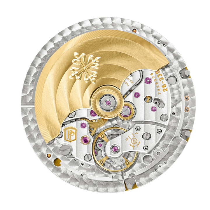 Diameter: 31 mm. Height: 4.82 mm. Number of parts: 290. Jewels: 29. Power reserve: Min. 35 hours - max. 45 hours. Winding rotor: 21K gold central rotor. Balance: Gyromax®Vibrations/hour: 28 800 (4 Hz). Balance spring: Spiromax®Hallmark: Patek Philippe Seal.