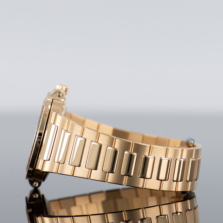 A rose gold bracelet completes the refined look of this 35-millimeter ladies' watch.