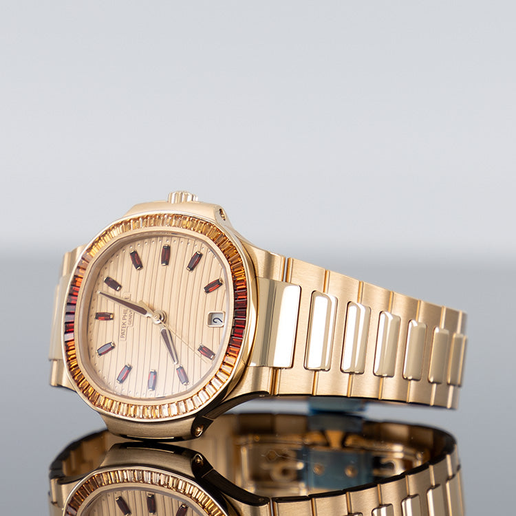 Made of rose gold, the Nautilus Ladies’ - 7118/1300R (Ref. 7118-1300R-001) presents itself as a modern jewelry version of the legendary Nautilus from Patek Philippe.