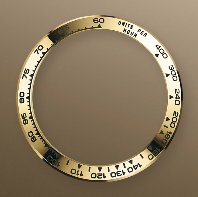 With its tachymetric scale, its three counters and its pushers, the Cosmograph Daytona was designed to be the ultimate timing tool for endurance racing drivers. The bezel features a tachymetric scale to read average speed over a given distance based on elapsed time.