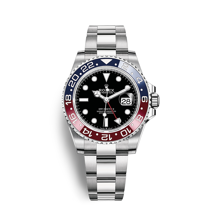 The emblematic two-colour bezel makes the GMT-Master II instantly recognizable.