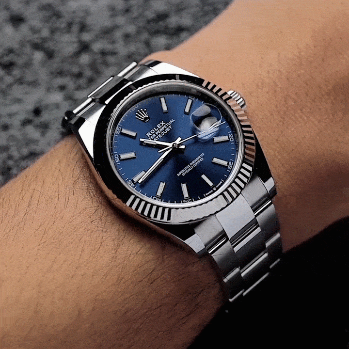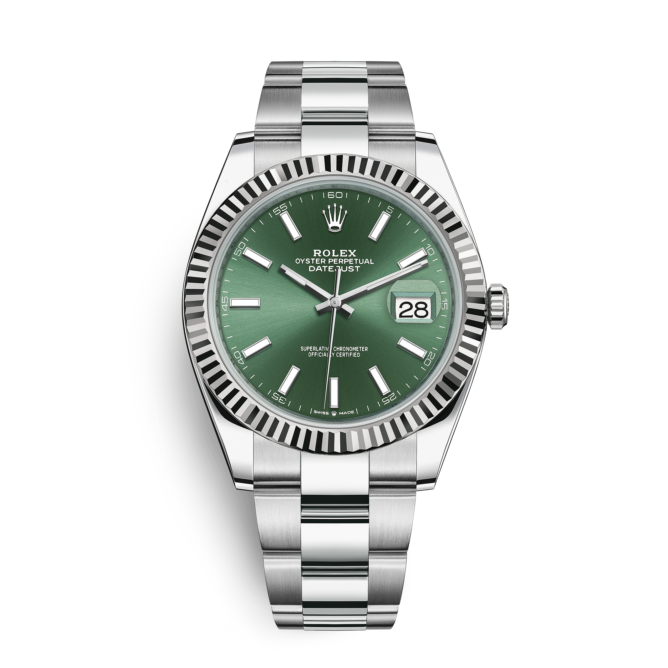 The light reflections on the case sides and lugs highlight the elegant profile of the 41 mm Oyster case, which is fitted with a fluted bezel. Aesthetically, the Datejust has spanned eras, while retaining the enduring codes that make it, notably in its traditional versions, one of the most recognized and recognizable of watches.