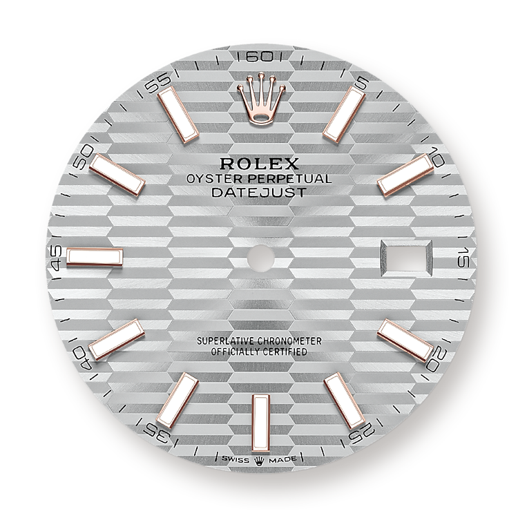THIS OYSTER PERPETUAL DATEJUST 41 IN OYSTERSTEEL AND EVEROSE GOLD FEATURES A SILVER, FLUTED-MOTIF DIAL AND A JUBILEE BRACELET.