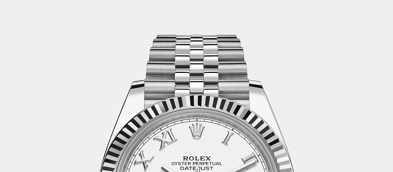 THIS OYSTER PERPETUAL DATEJUST 41 IN OYSTERSTEEL AND WHITE GOLD FEATURES A WHITE DIAL AND A JUBILEE BRACELET.