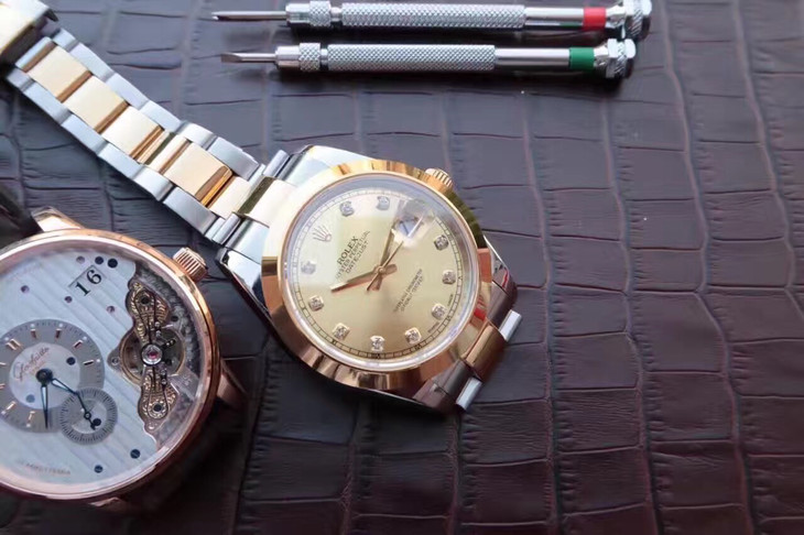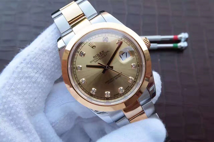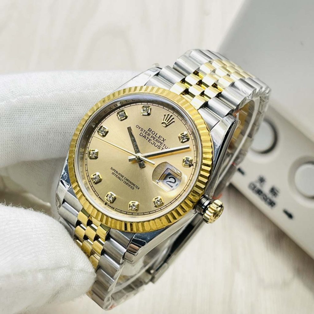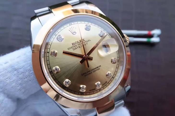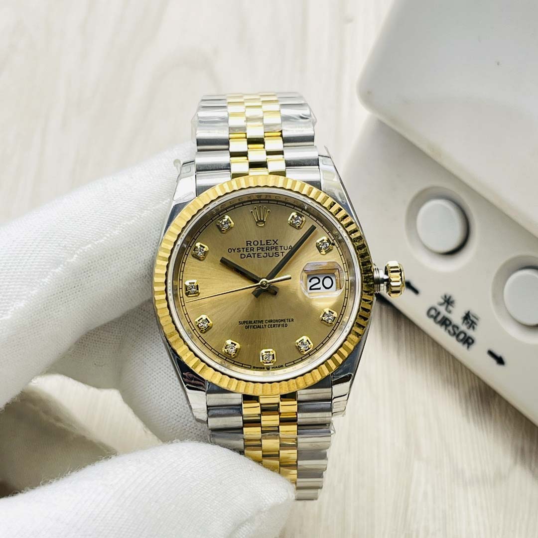 Rolex Datejust series 126303, gold dial with diamond inlay, Oyster bracelet wristwatch, diameter 41mm