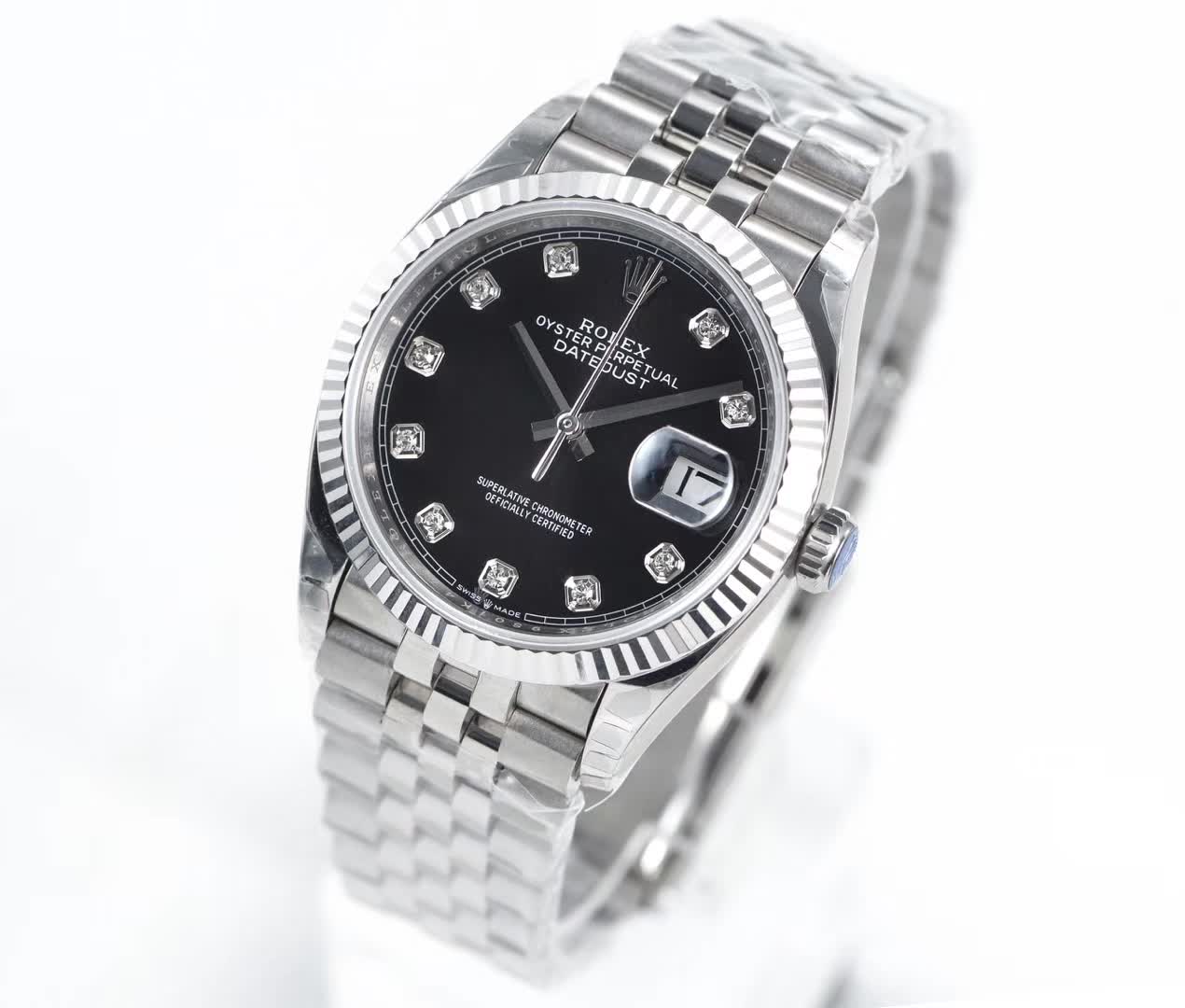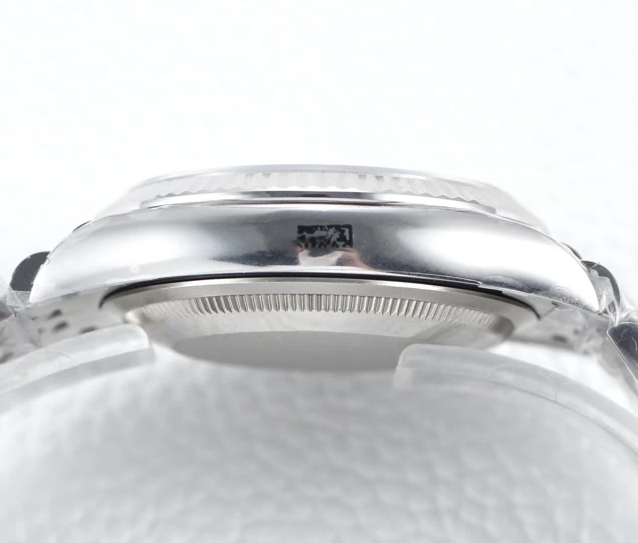 3. [Watch Case] Made of 316L stainless steel, the crown and case head are identical to those in the official boutiques! The white dial version has a single dot below the crown, while the two-tone version has two dots below the crown. The side profile of the case is identical to the original, with the addition of an anti-counterfeit QR code.