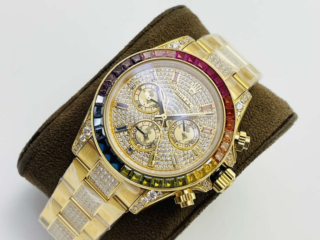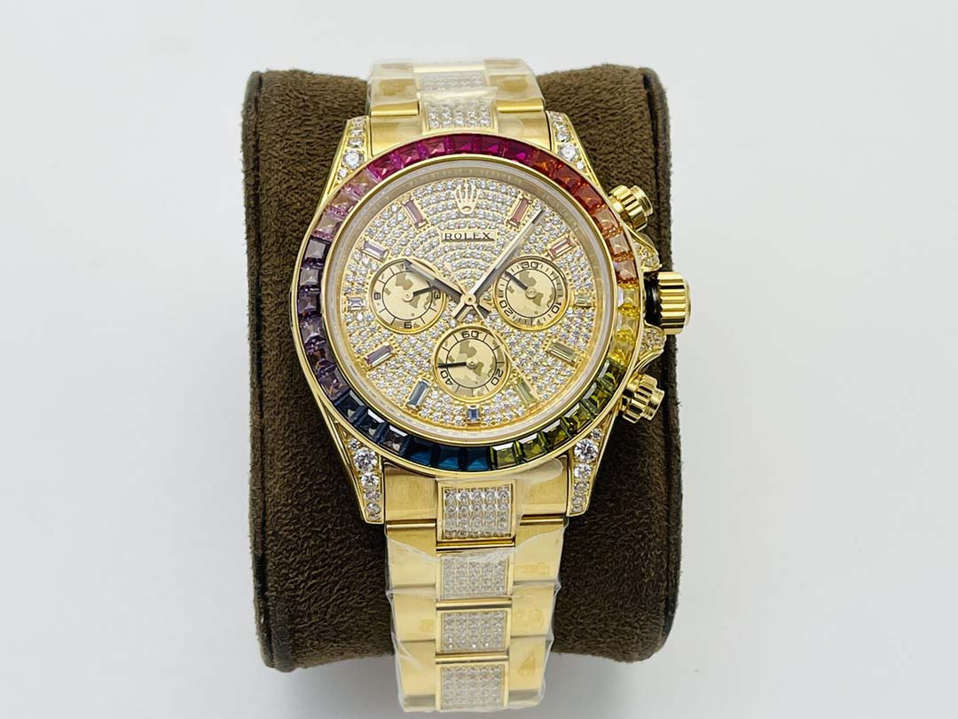 - The gemstones on the watch case are uniformly set, and the case is slim!