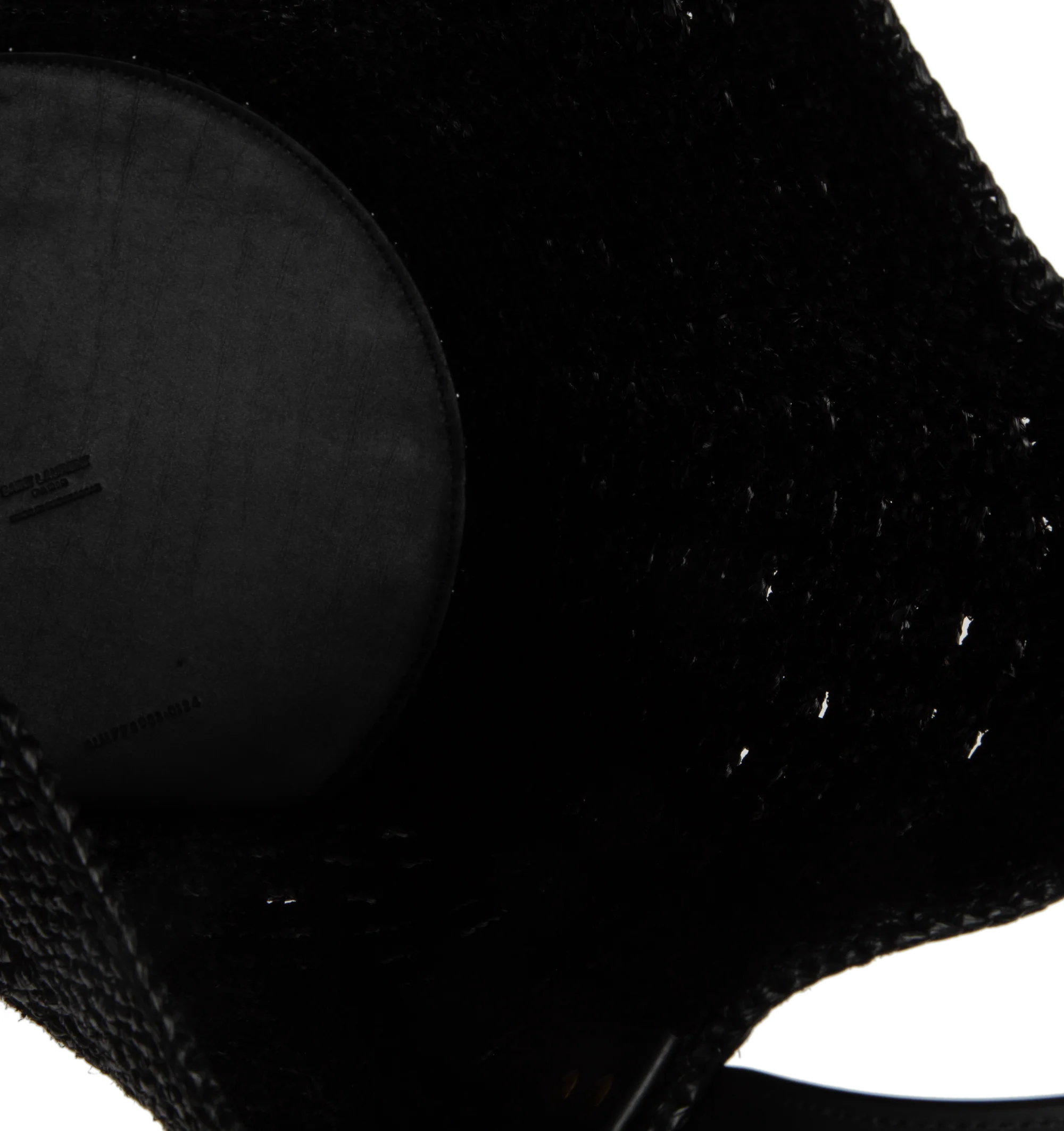 Saint Laurent bucket bag made with natural woven raffia and leather. Featuriong Cassandre and bronze-tone hardware and leather shoulder strap.