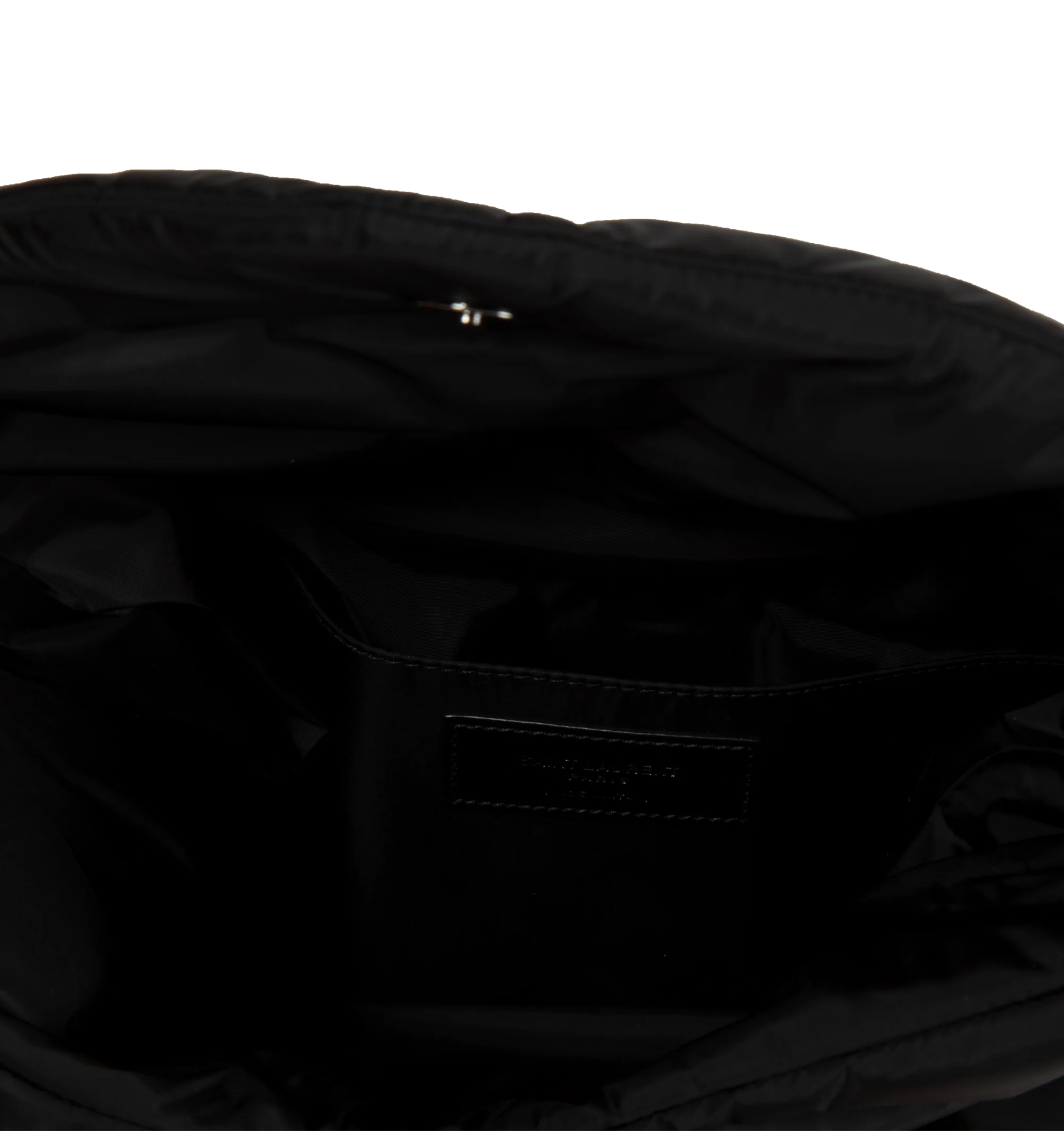 SAINT LAURENT Nylon Envelope Pouch featuring front flap, matte black hardware, magnetic snap closure, one flat pocket and canvas lining. 11.8" X 7.9" X 2".  90% polyamide, 10% brass. Made in Italy.