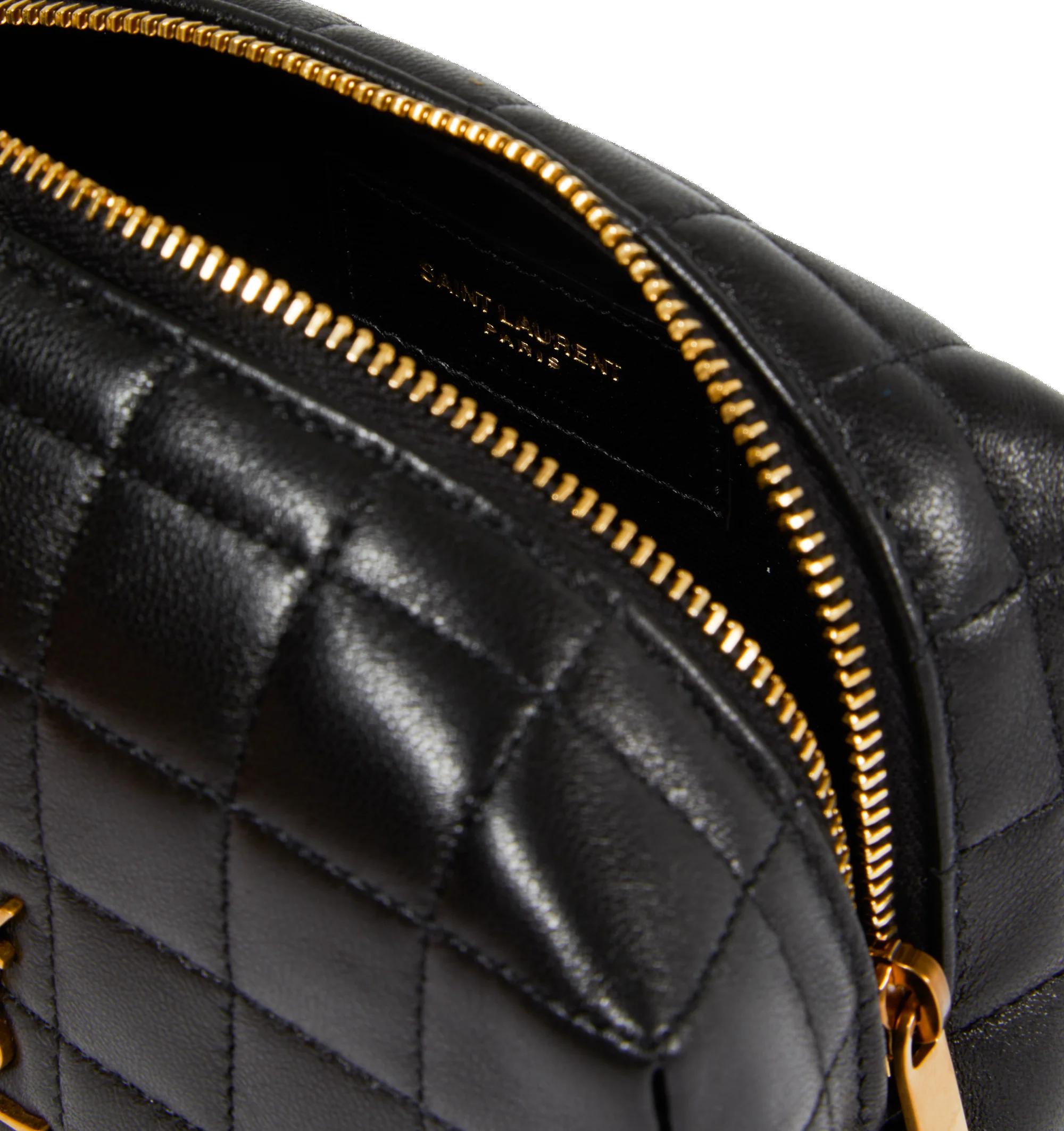 SAINT LAURENT Small Cosmetic Pouch featuring quilted overstitching, zip closure, one main compartment and leather lining. 5.9 X 3.3 X 3.3 inches. 70% lambskin, 30% metal.