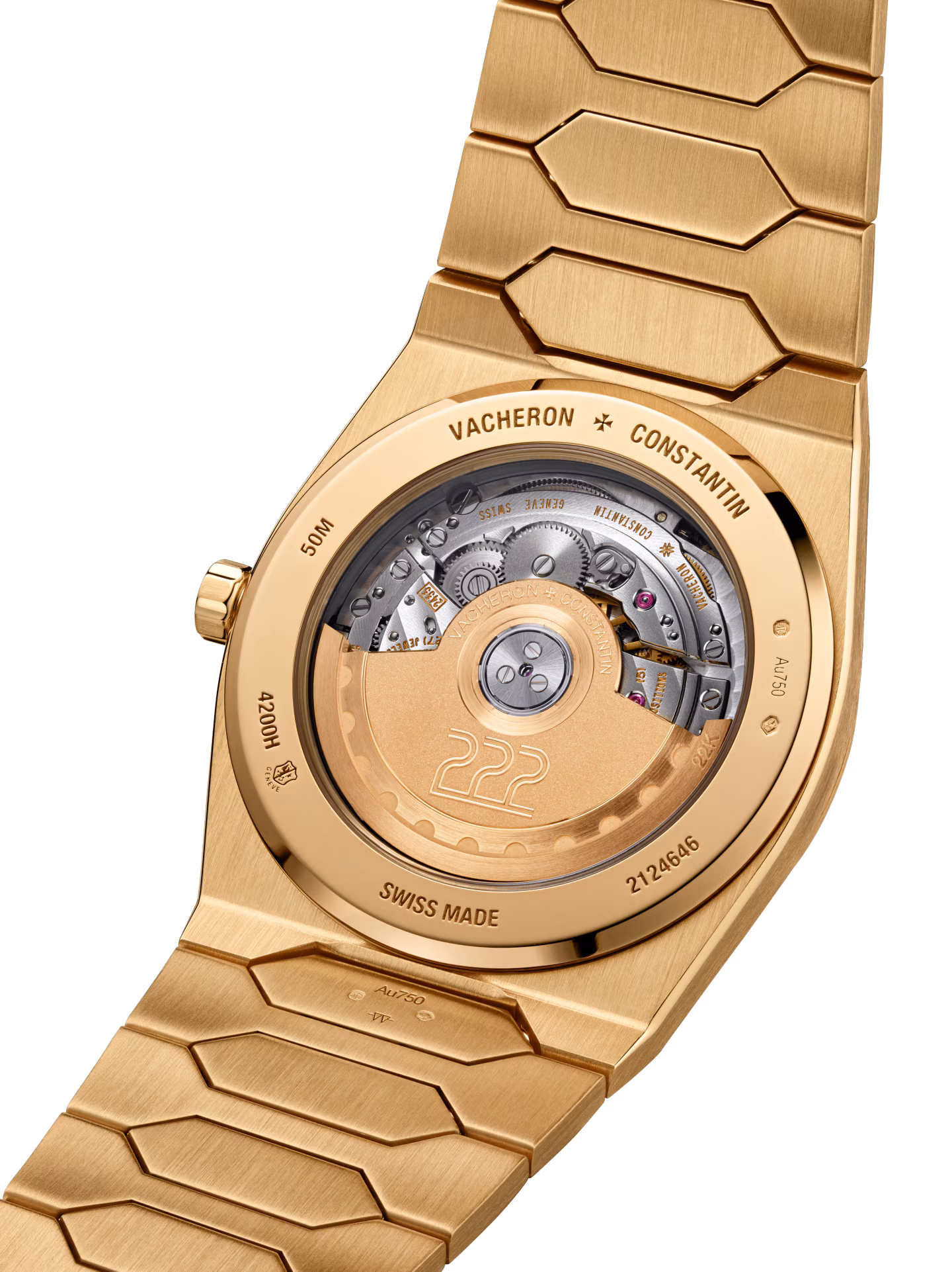 A true icon of the 1970s, the 37 mm ‘Jumbo’ 222 is a contemporary reissue of the historic model. With its monobloc tonneau-shaped case topped with a grooved bezel, this timepiece with integrated strap continues to showcase its robust, functional, and sporty spirit with timeless elegance, thanks to the purity of its lines and finesse of its curvature. The case is decorated with a Maltese cross at 5 o'clock and has an open caseback, allowing the caliber to be admired in full view with an oscillating weight specially redesigned for this model.
