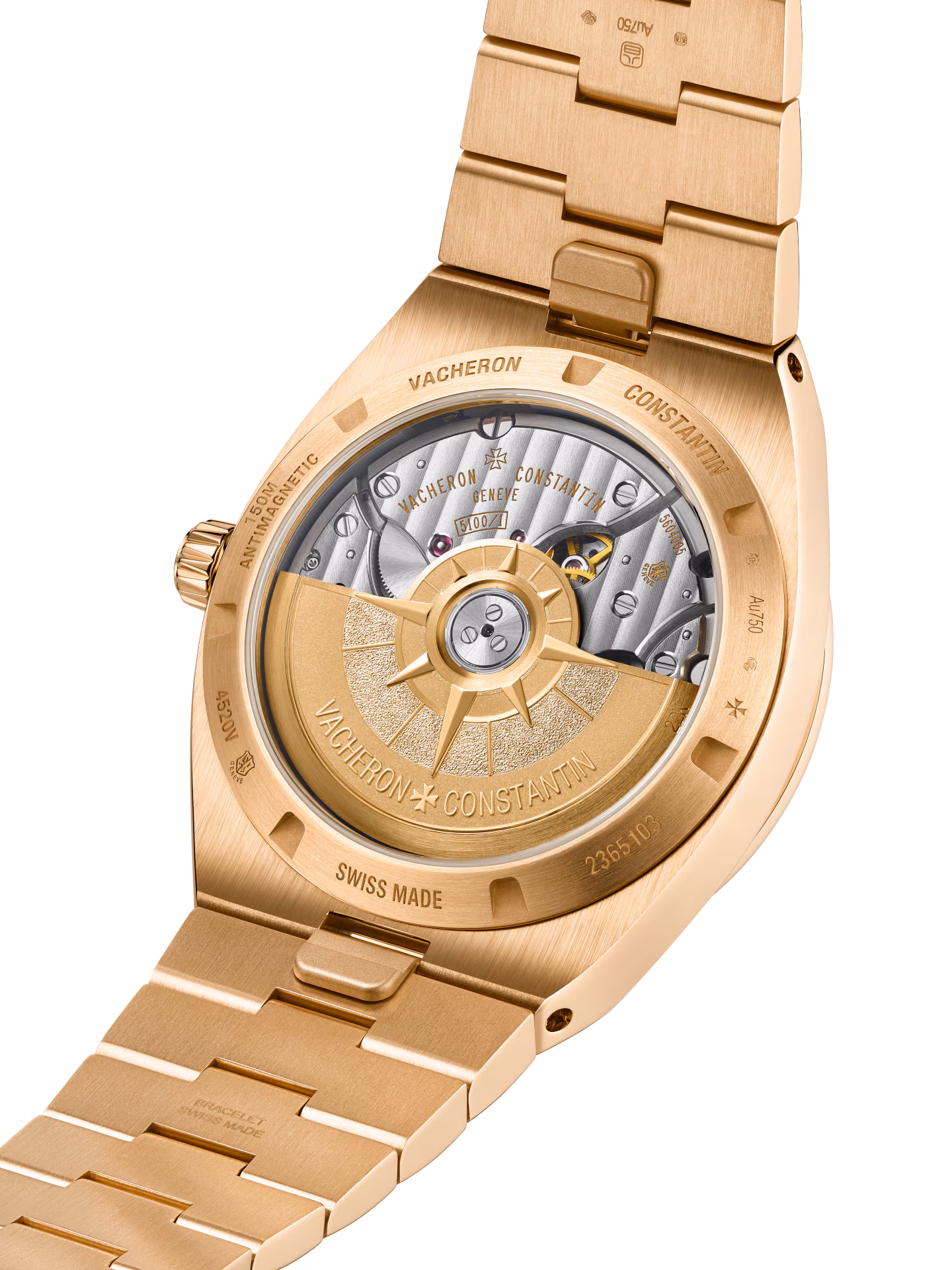 Perfectly suited to active lifestyles, this 18K 5N pink gold watch houses an automatic movement with an oscillating weight in 22K 3N yellow gold, inspired by the wind rose, a tribute to the spirit of travel. At 3 o’clock, a simple aperture opens to reveal the date. Thanks to its pin buckle and three straps – 18K 5N pink gold, leather, and rubber – equipped with a self-interchangeable system, the watch can be personalized according to the owner’s wishes. Through its links, the bracelet subtly reveals the Maltese cross, a Vacheron Constantin icon.